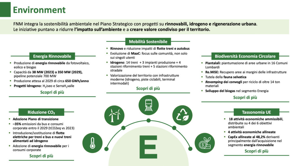 FNM integra la sostenibilità ambientale nel Piano Strategico sui rinnovabili, idrogeno e rigenerazione urbana.