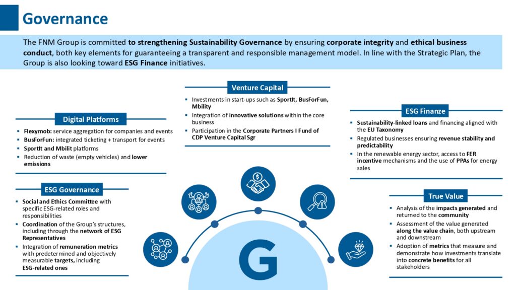Governance is the foundation of the FNM Group‘s sustainability strategy, ensuring transparency, ethics, and integrity in every decision-making process.