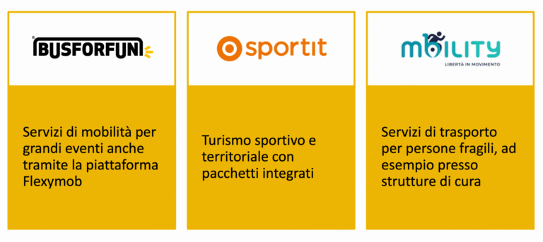 - Proposta di servizi di sharing mobility, come E-Vai e BusForFun o Mbility per le persone con fragilità