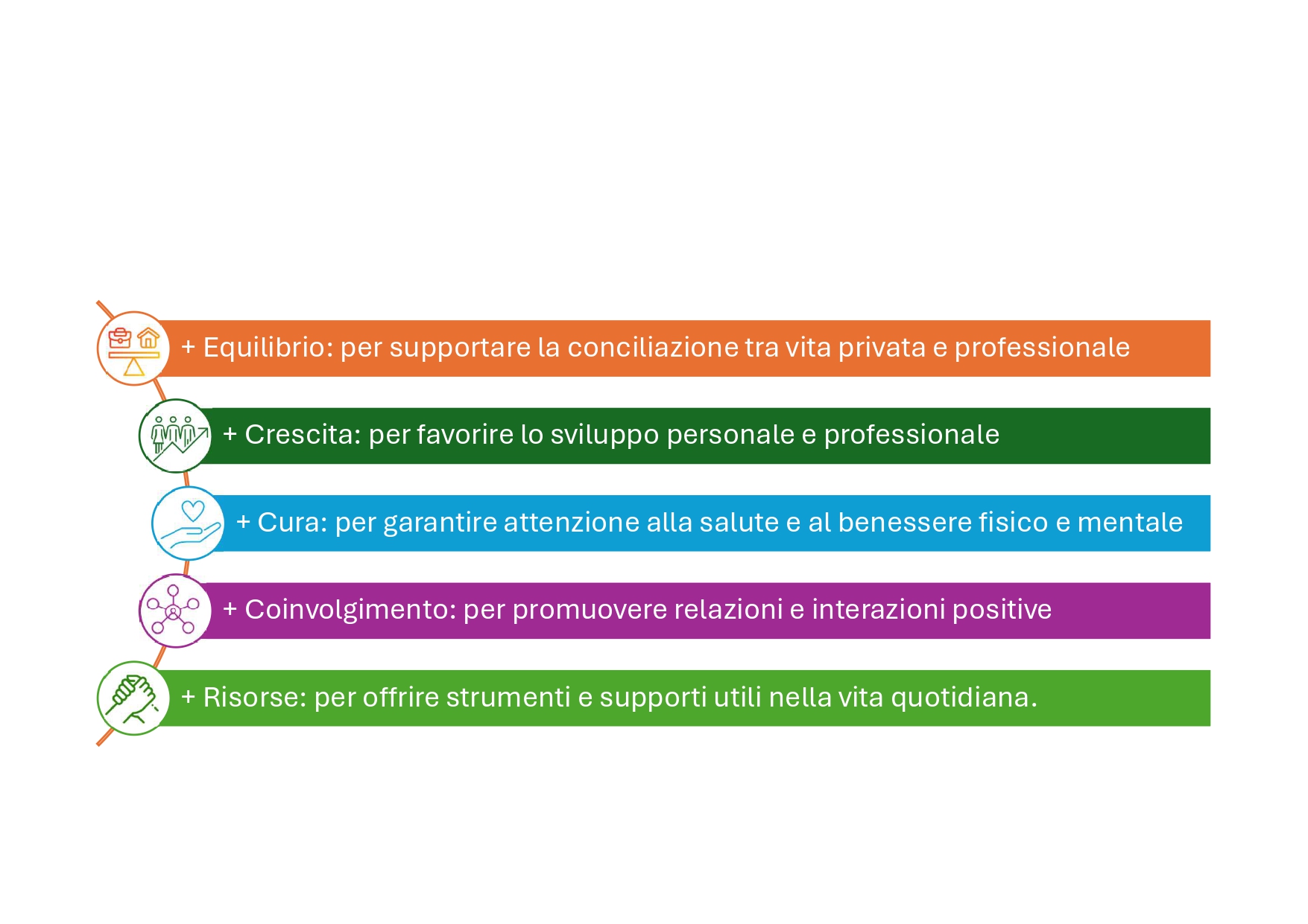 La formazione e lo sviluppo del capitale umano sostengono l’occupazione qualificata, a beneficio dei dipendenti e delle comunità locali; le iniziative di walfare promuovono il benessere dei dipendenti e favoriscono la conciliazione vita-lavoro.